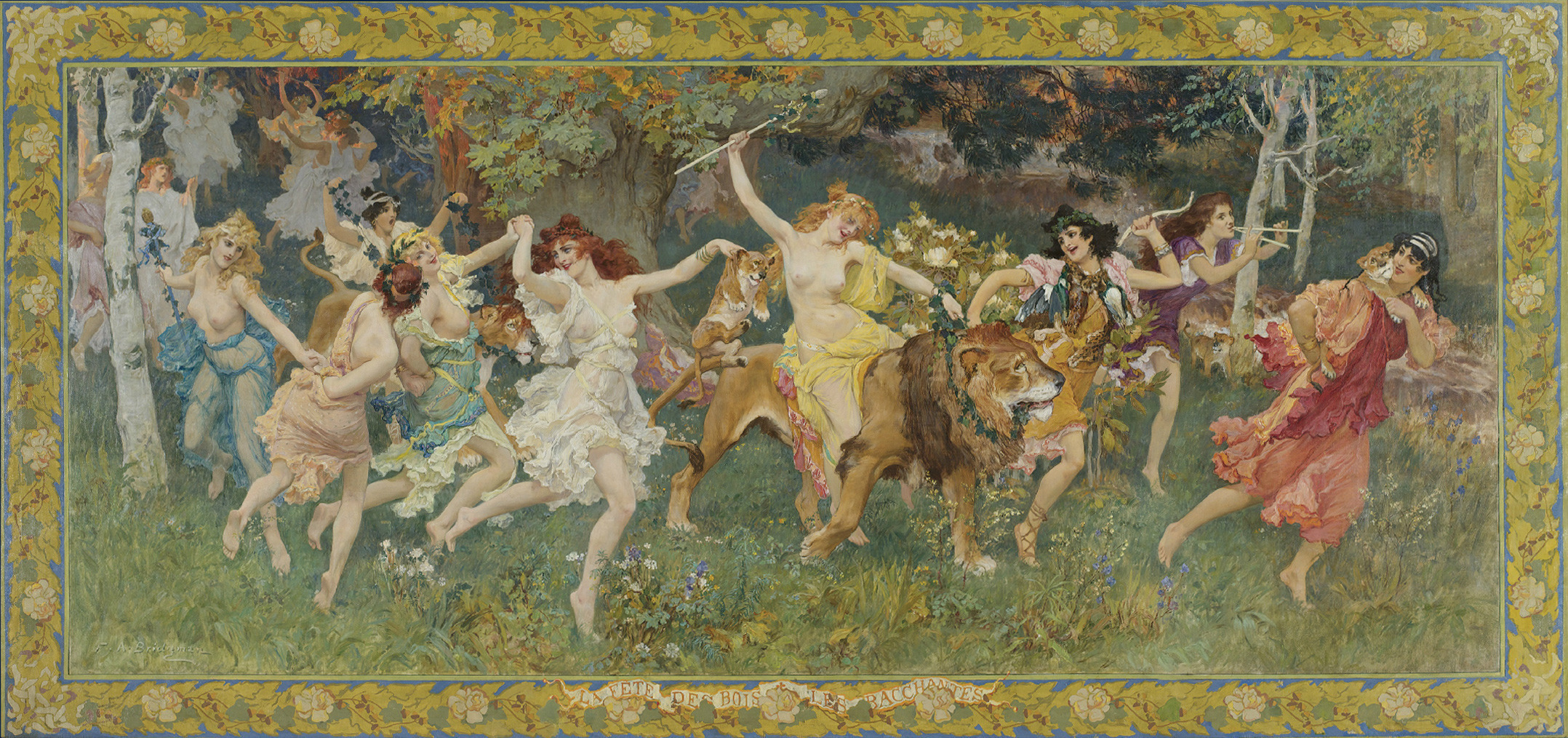 La Fete des Bois, Les Bacchantes, bridgman, Oil on canvas, 381 x 185.4 cm, Private collection