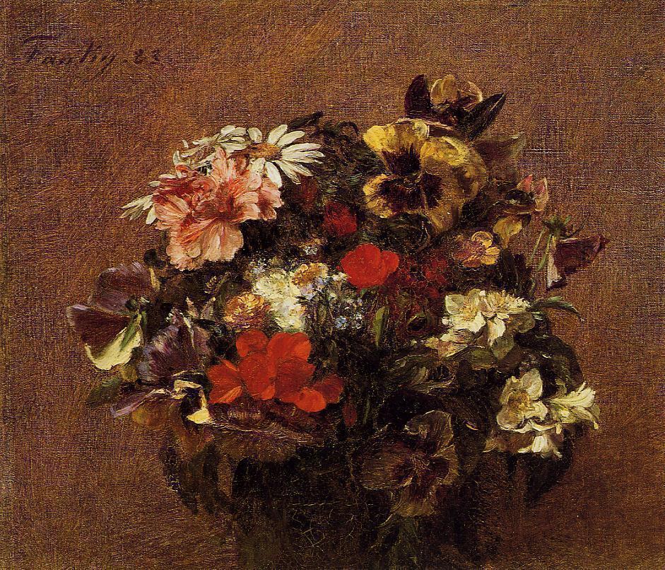 Bouquet of Flowers Pansies, 1883, fantinlatour, oil, canvas, Private Collection