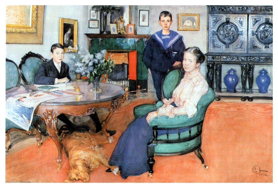 Hakon, Daga and Edgar, 1902, larsson, watercolor, paper