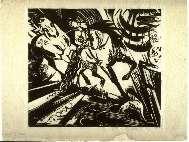 Riding School, 1913, marcfrantz, woodcut, paper