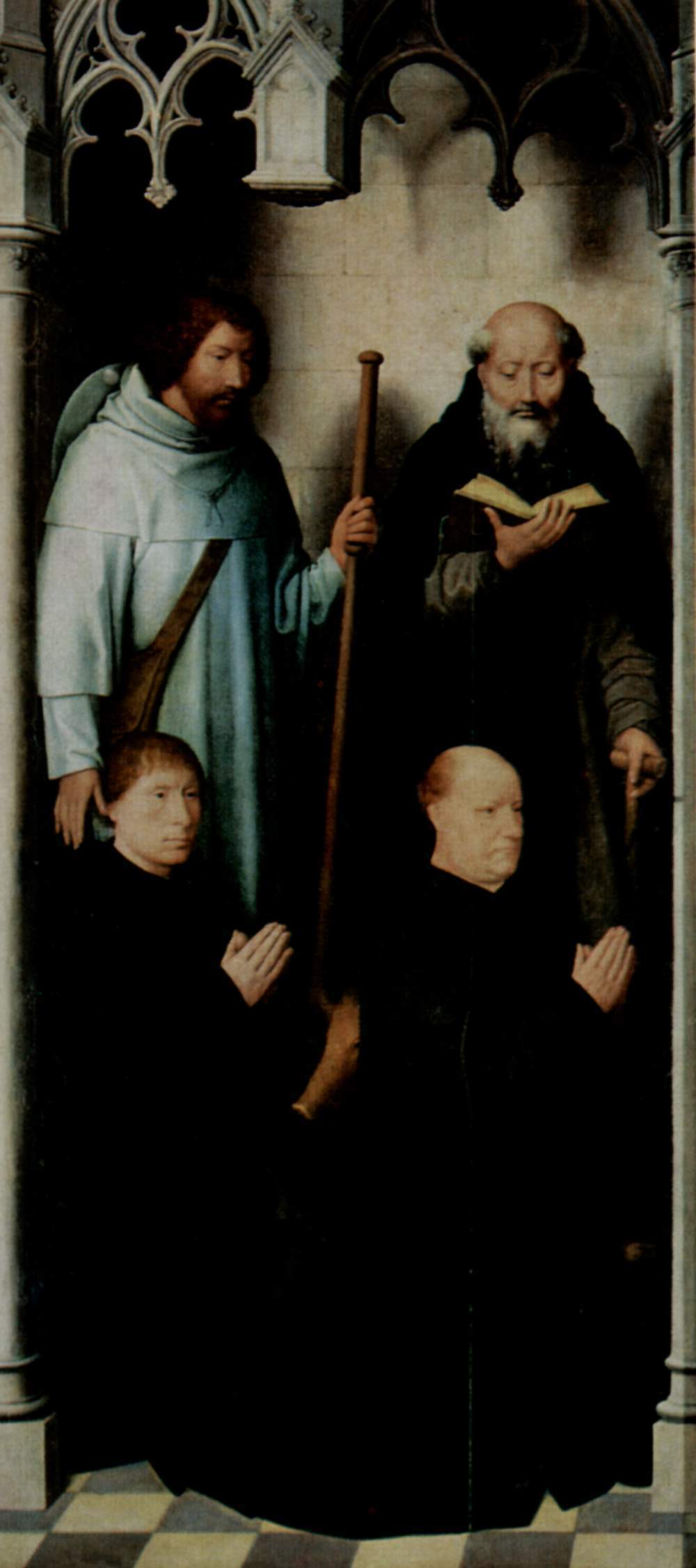 Triptych of the Mystical Marriage of St. Catherine of Alexandria, The founder Jacob de Kueninc and Anthony Seghers , 1479, memling, Memling Museum, Saint Jeans Hospital (Bruges, France)