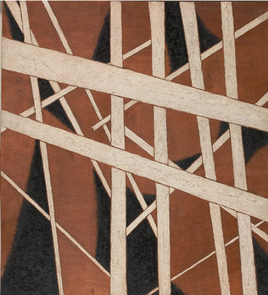 Red and white figures and small shield, kirchner