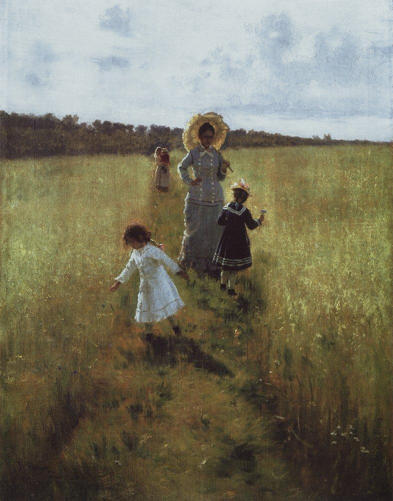 On the boundary path. V.A. Repina with children going on the boundary path, 1879, repin