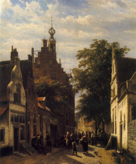 Figures in a Street in Delft, 1853, springer, oil, canvas, Private Collection