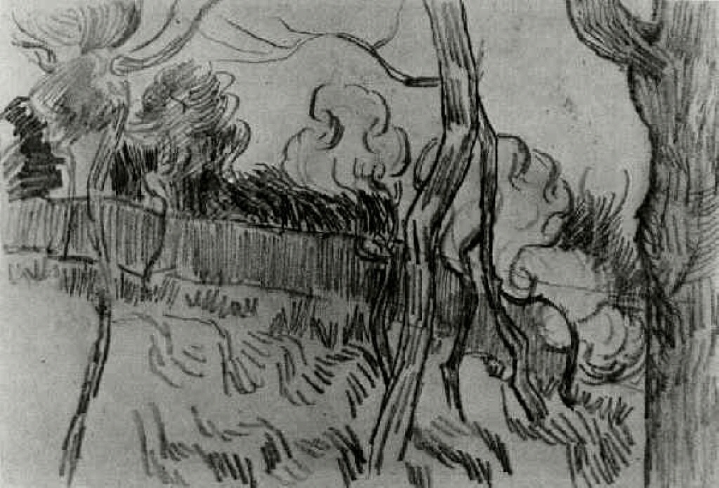 Pine Trees Seen against the Wall of the Asylum, 1889, vangogh, pencil, paper, Van Gogh Museum, Amsterdam, Netherlands
