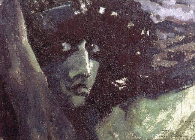 Head of Demon with mountains, 1890, vrubel, watercolor, paper, The Museum of Russian Art, Kiev, Ukraine