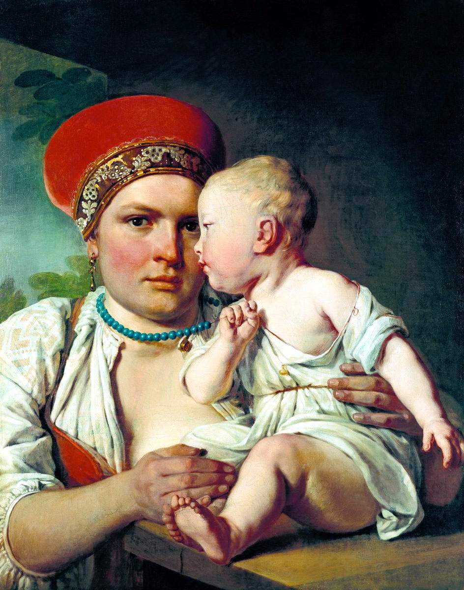 Wet-Nurse with a Child, 1830, venetsianov, oil, canvas, Tretyakov Gallery, Moscow, Russia